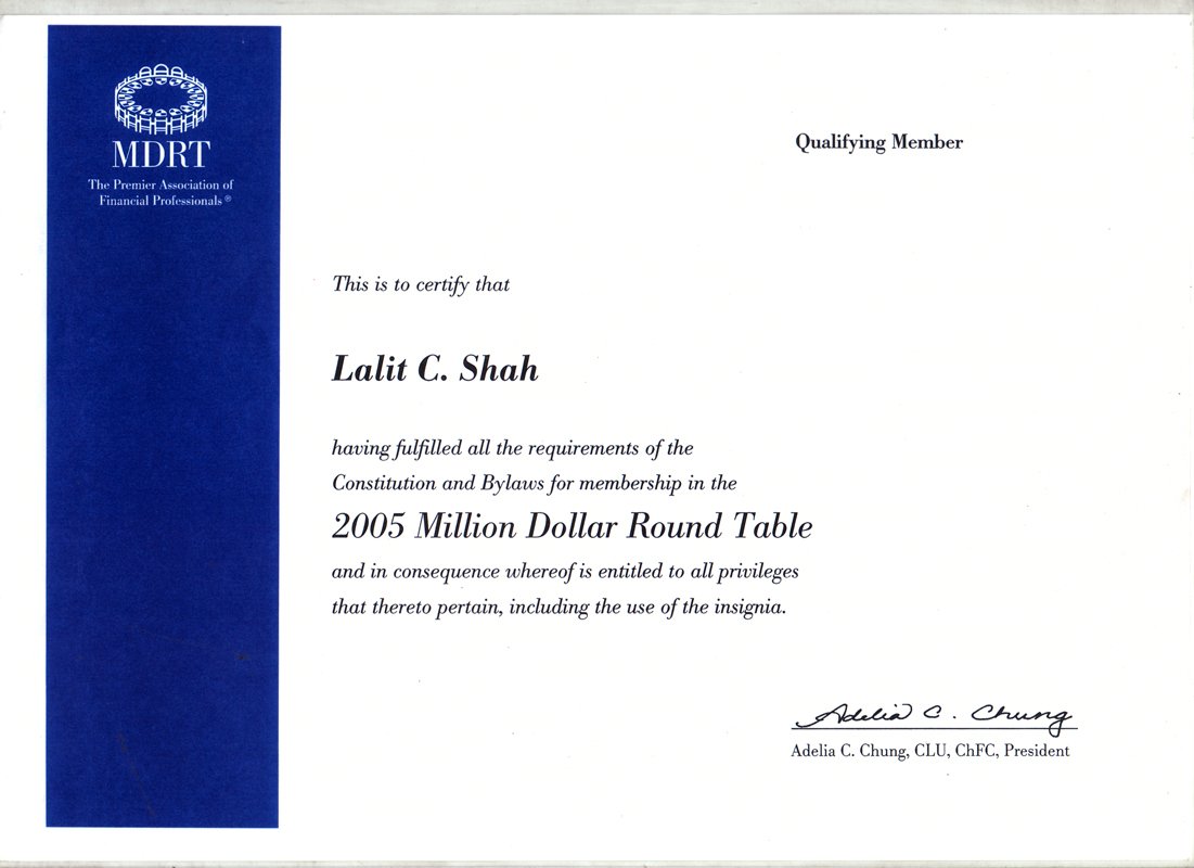 Lalit C. Shah is the finest IRDA qualified “Birla Sun Life Insurance Advisor“ since 11.08.2004